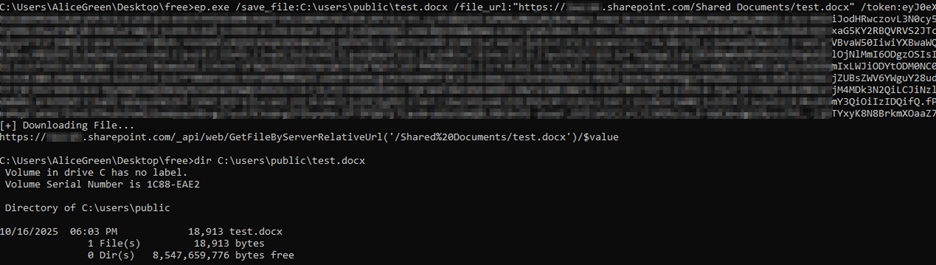 ep.exe /save_file:C:\users\test.docx /file_url:https://xxx.sharepoint.com/test.docx /token:eyJxxxx